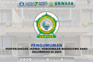 Pengumuman Perpanjangan Jadwal Masa Penerimaan Mahasiswa Baru (PMB) Gelombang III. Sehubung dengan tingkat animo masyarakat yang besar terhadap pendidikan tinggi, dengan ini kami informasikan bahwa masa pendaftaran untuk gelombang III Universitas KH. A. Wahab Hasbullah (Unwaha) telah diperpanjang. Adapun jadwal pendaftaran diperpanjang hingga Minggu, (15/9/2024). Kami mengundang seluruh calon mahasiswa baru untuk segera mendaftar dan menjadi […]