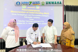 Jombang – Fakultas Teknologi Informasi (FTI) Universitas KH. A. Wahab Hasbullah (Unwaha) Jombang resmi menjalin kersjasama dengan Dinas Perdagangan dan Industri (Disdagrin) Kabupaten Jombang melalui penandatangan Memorandum of Understanding (Mou) tentang Pengembangan Aplikasi Sistem Informasi Bina Industri Paripurna (SEMPURNA), di Gedung F Unwaha, Rabu (15/5/2024). Sebagai pihak pertama, Kepala Disdagrin Kabupaten Jombang, Drs. Suwignyo, M.M. mengatakan, perjanjian […]