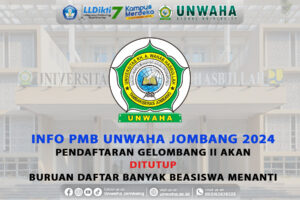 Jombang – Periode pendaftaran Penerimaan Mahasiswa Baru (PMB) gelombang II Universitas KH. A. Wahab Hasbullah (Unwaha) Jombang akan ditutup Jumat, (31/5/2024) besok. Tersedia banyak pilihan Program Studi yang terakreditasi baik hingga baik sekali dan beasiswa yang dapat dimanfaatkan. Segera daftarkan diri anda dan menjadi bagian dari kampus terbaik Nahdlatul Ulama. Kuliah di Unwaha Jombang menjadi […]