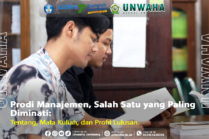 Jombang – Program Studi (Prodi) Manajemen merupakan salah satu Prodi Sosial dan Humaniora (Soshum) yang paling banyak diminati oleh calon mahasiswa. Sesuai dengan namanya, Prodi ini mempelajari bagaimana caranya memimpin, merencanakan dan mengendalikan organisasi untuk mencapai tujuan yang diinginkan. Di Universitas KH. A. Wahab Hasbullah (Unwaha) Jombang, Prodi Manajemen berada di bawah naungan Fakultas Ekonomi […]