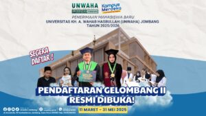 Jombang – Pendaftaran untuk Penerimaan Mahasiswa Baru (PMB) gelombang II (dua) Universitas KH. A. Wahab Hasbullah (UNWAHA) Jombang tahun akademik 2025/2026 telah resmi dibuka. Bagi calon mahasiswa yang belum sempat mendaftar pada gelombang I, kini memiliki kesempatan untuk mengikuti seleksi pada periode pendaftaran kedua ini. Periode pendaftaran gelombang ke-II dibuka mulai 11 Maret hingga 31 […]