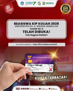 Beasiswa KIP Kuliah 2025 Tahap Kedua UNWAHA Resmi Dibuka