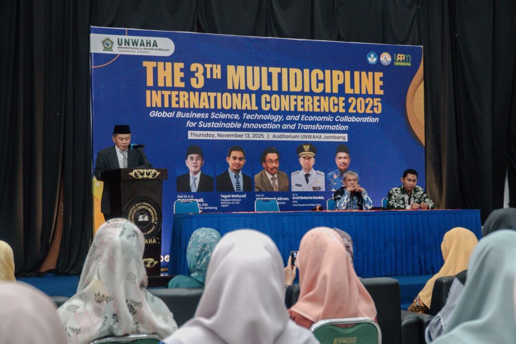 Jombang – Universitas KH. A. Wahab Hasbullah (Unwaha) Jombang menyelenggarakan The 3th Multidisciplinary International Conference 2025 dengan tema “Global Business Science, Technology, and Economic Collaboration for Sustainable Innovation and Transformation” pada Rabu (13/11/2025) di Auditorium Unwaha. Konferensi internasional ini menghadirkan para akademisi, peneliti, dan praktisi dari berbagai negara untuk membahas kolaborasi global dalam mendorong inovasi berkelanjutan.