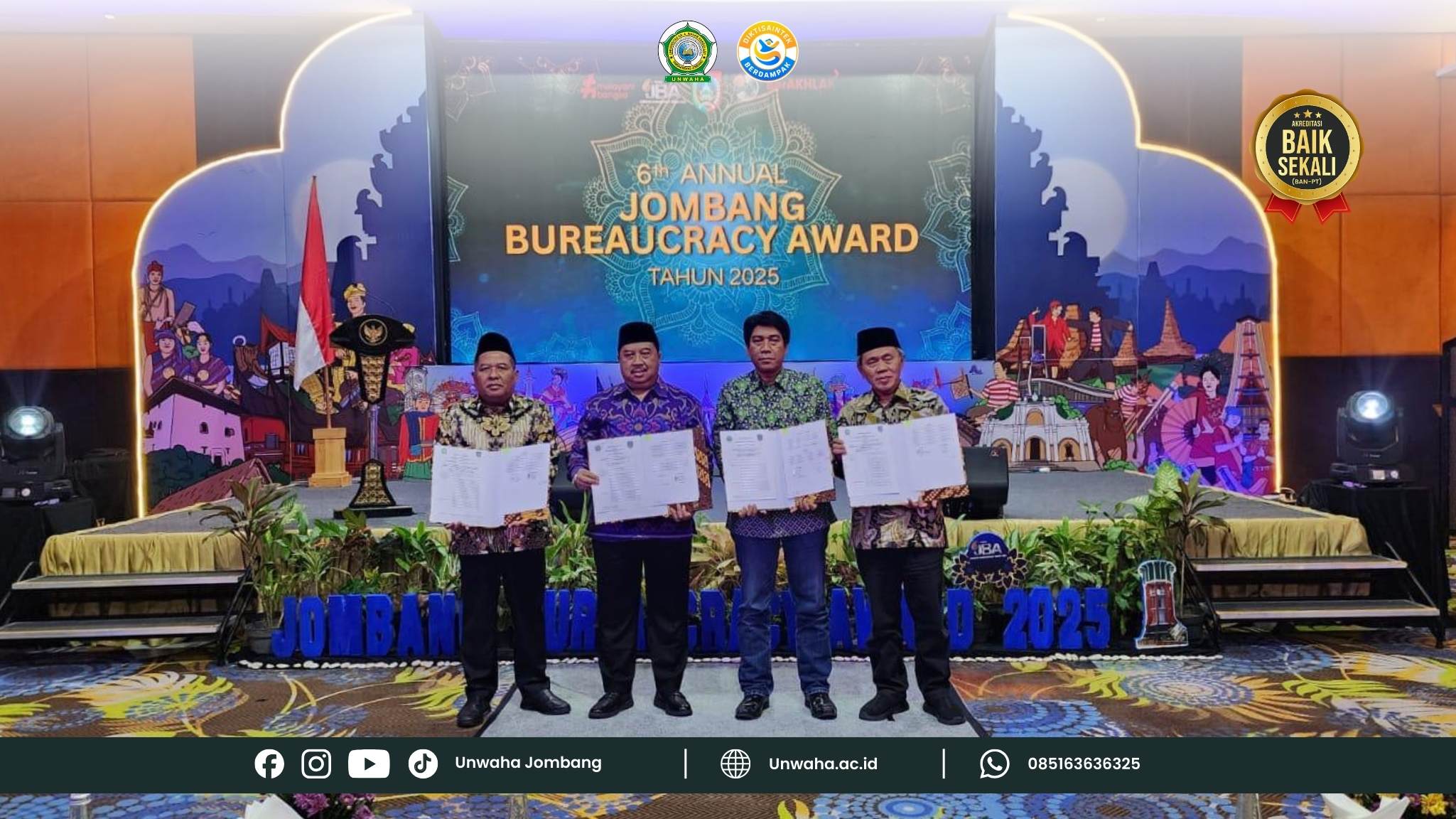 Surabaya – Universitas KH. A. Wahab Hasbullah (Unwaha) Jombang resmi menjalin kerja sama strategis dengan Pemerintah Kabupaten Jombang melalui penandatanganan Kesepakatan Bersama (MoU) yang dilaksanakan dalam rangkaian acara 6th Annual Jombang Bureaucracy Award 2025. Acara tersebut berlangsung pada Jumat, (28/11/2025) di Mercure Surabaya Grand Mirama.